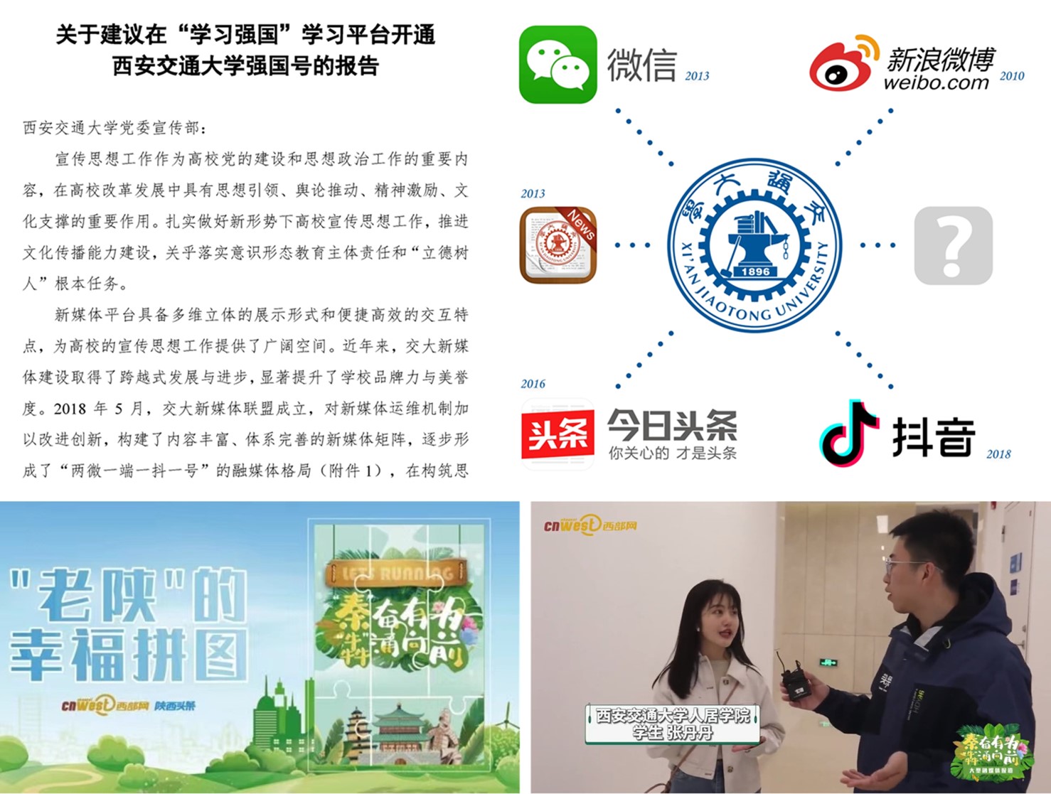 理想信念是共产党人的精神之“钙”,文化自信是更基本更深沉更持久的力量。支部党员依托学生工作岗位积极投身学校理论宣教工作,提交的《关于建议在“学习强国”学习平台开设西安交通大学强国号的报告》促成西安交大强国号上线运营,在对外宣传领域进一步提升了学校影响力和文化传播力。其中,协助负责平台日常运营工作的支部党员参与策划推出“历史上的今天|说‘四史’”专栏,为党史学习教育增添新途径。另外,支部两名党员作为创新港数字展厅讲解员代表学校参赛并参加相关节目录制,面向社会广泛传递校史和西迁精神。