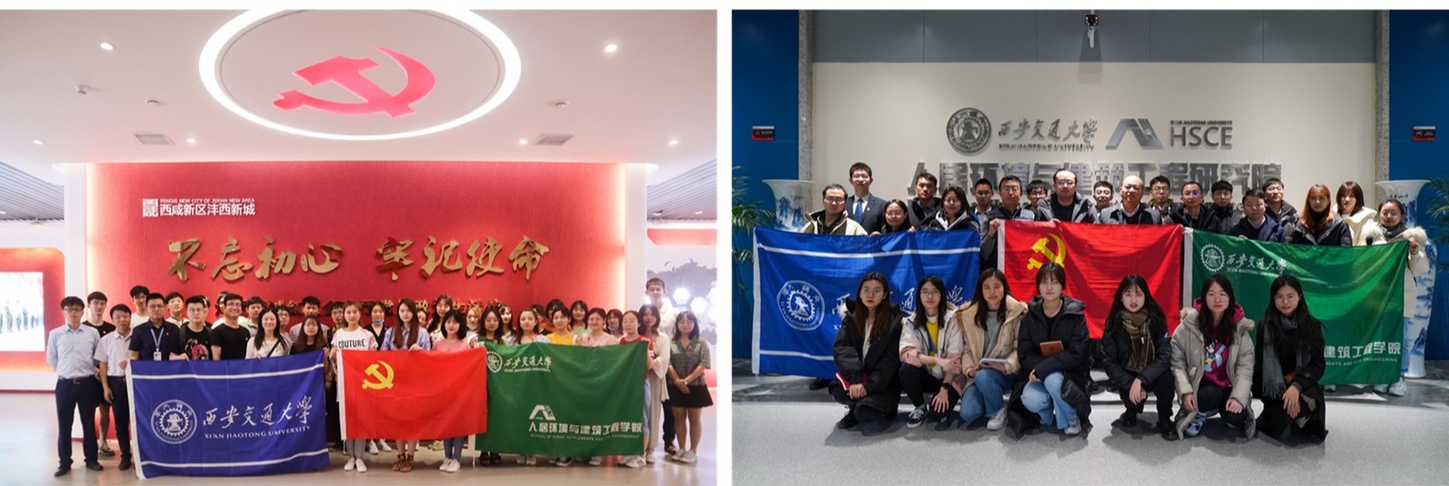其中,支部建筑学党员充分发挥专业优势和主人翁意识,积极参与学校重大工程建设项目的方案设计工作。参与设计的“梧桐家苑”——交大社区综合养老服务中心现已开工建设,该项目是学校落实习近平总书记对西迁老同志“身体健康、晚年幸福”的重要指示精神的关键举措;参与设计的创新港人居环境科学与工程研究院(7号楼)进入主体装配式施工收尾阶段,为年底前竣工验收、全面交付打下坚实的基础,该项目是创新港唯一一座由交大师生自己设计的作品。近期,支部党员结合自身研究方向,调研创新港空间活力以及核心区室外环境热舒适性,为校区二期规划和优化设计方向提供参考。
