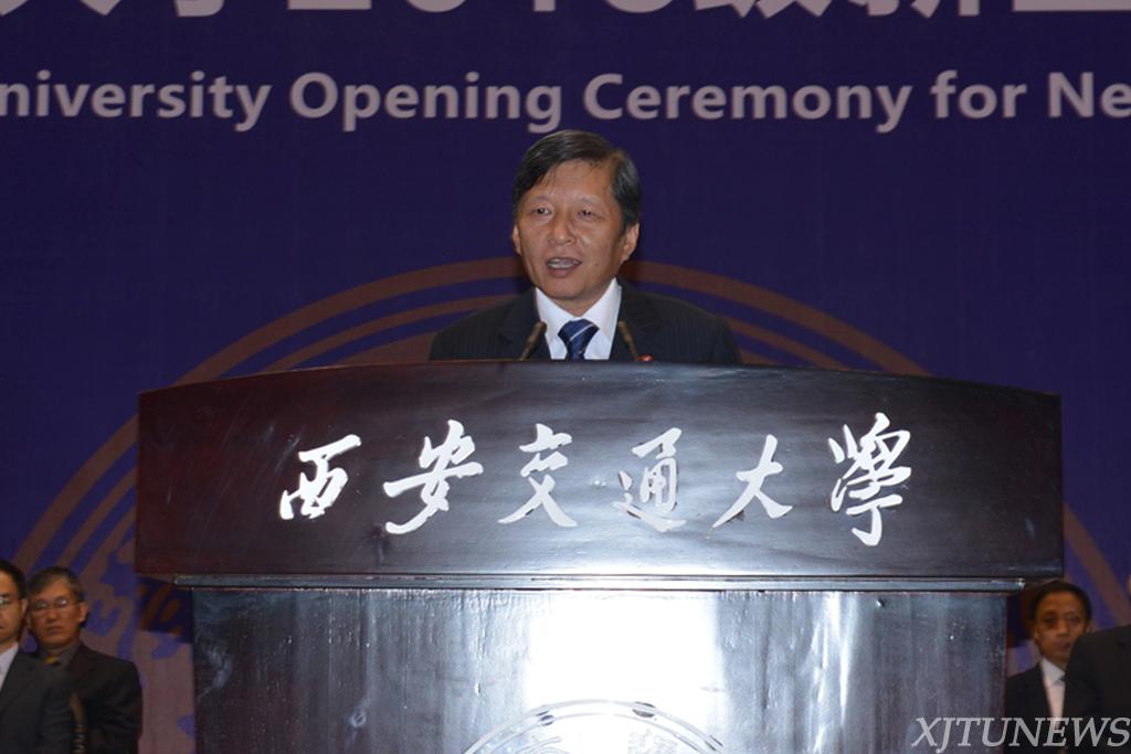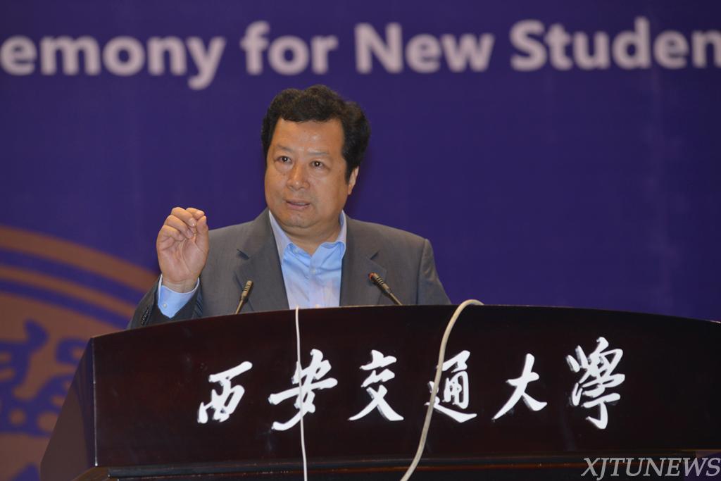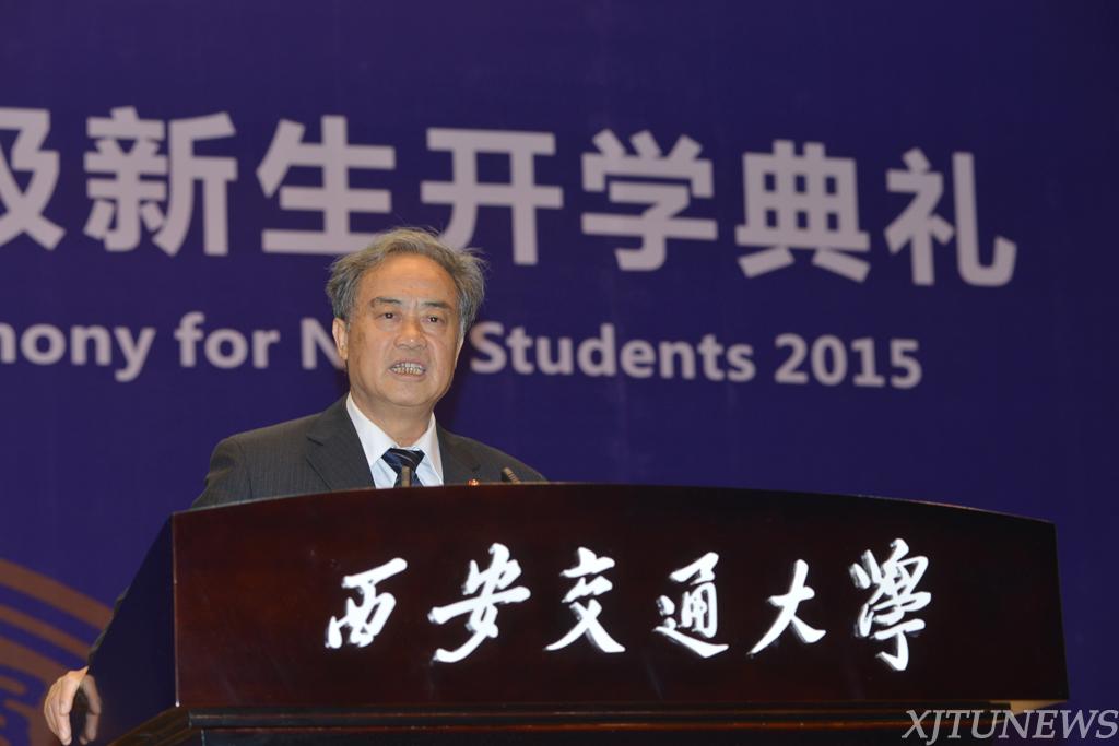 中国工程院院士、机械工程学院院长卢秉恒代表全体教师发言。卢秉恒院士从自己在国务院第一次专题讲座上讲授“先进制造与3D打印”的经历出发,向同学们介绍了我国制造业发展现状及未来发展方向。卢秉恒院士说:“你们是肩负中国制造2025的中坚力量,也是中国实现跨越式发展的主力军。”他期望新生们能够扎实理论基础知识,培养工程实践能力,发散创新思维,为国家、民族实现强国梦贡献智慧与力量。