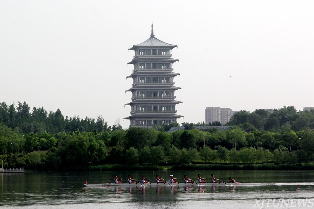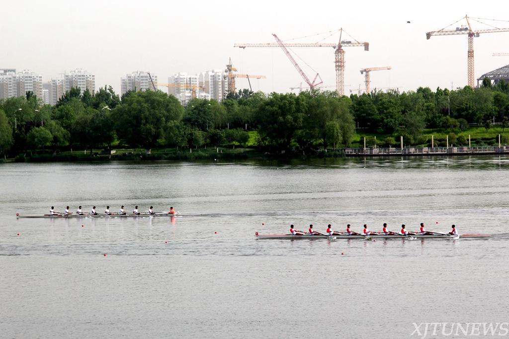长安塔矗向天去,大兴城东白鸟还。流波漾金春水渌,飞桨相逐誓争先。本次挑战赛分为男子、女子八人单桨有舵手大学菁英组、中学组、大师组、书院组、新人组,以及男子菁英组四人单桨无舵手等9个项目组别。
