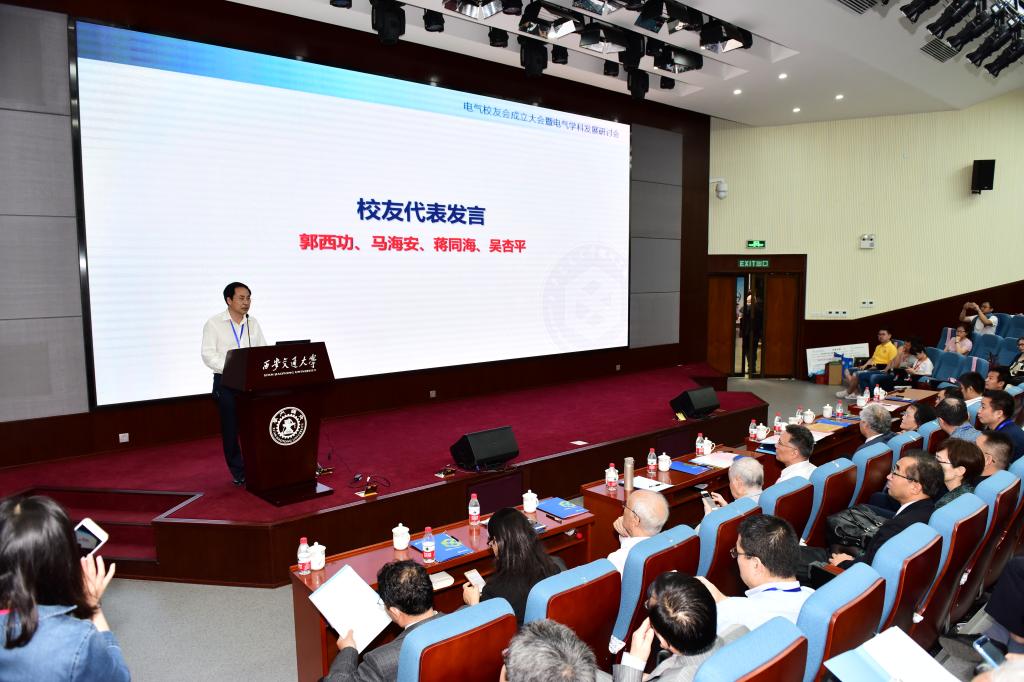 作为中国电气工程高等教育110周年系列纪念活动之一,5月19日,西安交通大学电气校友会成立大会电气学科发展研讨会在科学馆101举行。西安交通大学校长王树国,雷清泉、邱爱慈、王锡凡院士,党委常务副书记王小力,副校长郑庆华、王铁军出席大会,学校原党委书记王建华,电气校友会代表,相关职能部处、学院、书院负责人,离退休教师,以及电气学院师生代表近400人参加。大会由副校长席光主持。