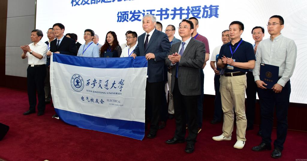 大会审议通过了《西安交通大学电气校友会章程》《西安交通大学电气学科发展专家咨询委员会议事规则》,推举产生了第一届电气校友会理事会理事、电气学科发展专家咨询委员会委员,校友关系发展部副主任赵力宣读西安交通大学电气学院校友会成立通告,王树国校长、席光副校长、郑庆华副校长、王铁军副校长为第一届电气校友会会长、副会长、秘书长、副秘书长等人颁发证书并授予会旗。至此,西安交通大学电气校友会正式成立。