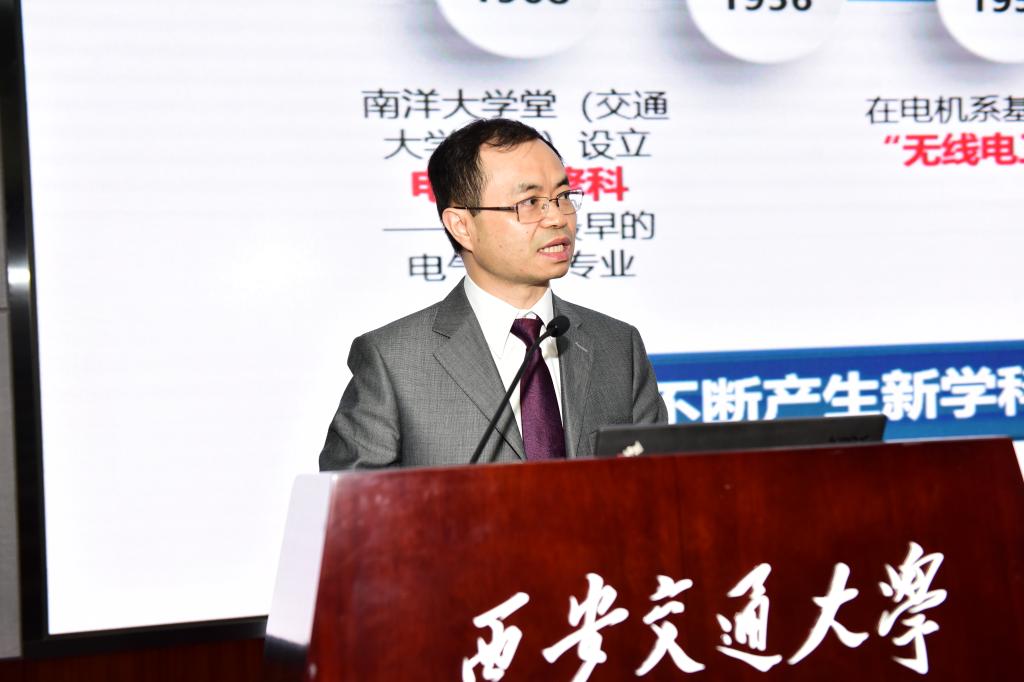 电气学院常务副院长李盛涛就学院、学科的建设情况及未来发展规划做汇报。他强调,电气学科今天所取得的成绩是全体电气人牢记“精勤求学、敦笃励志、果毅力行、忠恕任事”的校训,传承西迁精神,共同努力的结果。未来电气学院计划在中国西部科技创新港建设7个研究所、13个研究中心、4个公共大平台,期待能继续与广大校友携手合作,共创电气学科美好未来。
