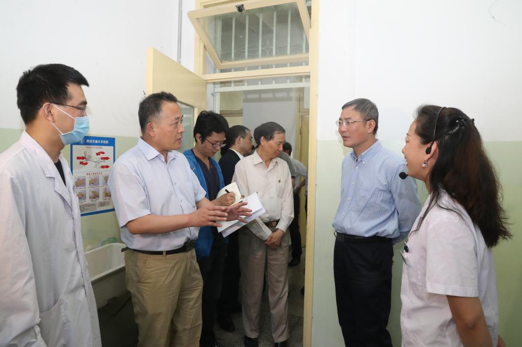 5月24日下午,全国人大常委会副委员长蔡达峰,陕西省人大常委会副主任朱静芝,省卫计委、省教育厅等部门领导莅校检查传染病防治法执行情况。
