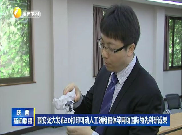 【陕西电视台】西安交大发布3D打印可动人工颈椎假体等两项国际领先科研成果