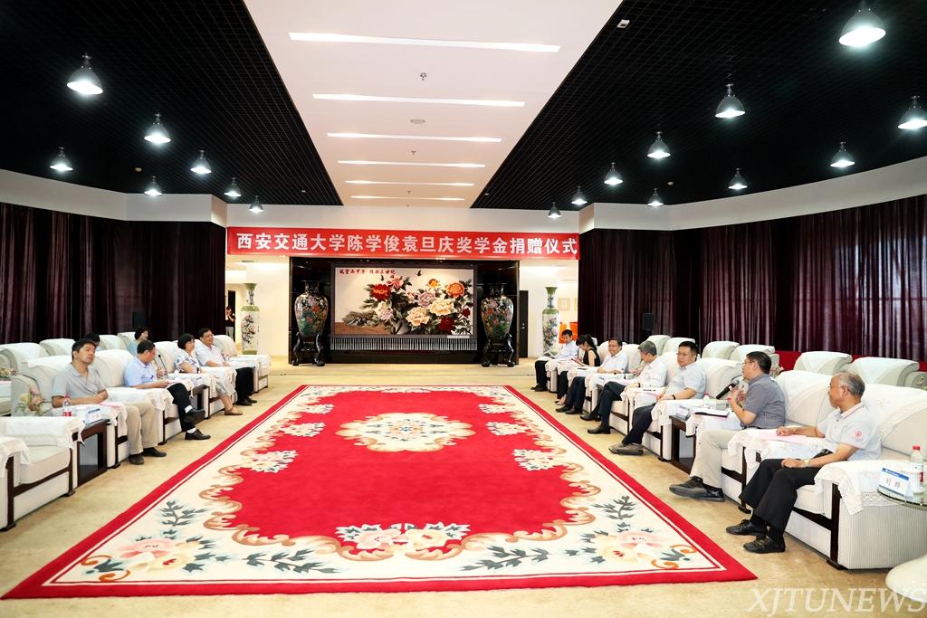 9月3日下午,“陈学俊袁旦庆奖学金”捐赠仪式在西安交通大学主楼23层宣怀厅举行。陈学俊、袁旦庆伉俪的子女代表陈以虹女士向西安交通大学赠予80万元。西安交通大学党委书记张迈曾,动力工程多相流国家重点实验室主任、中国科学院院士郭烈锦,以及相关学院、行政单位负责人出席捐赠仪式。西安交大教育基金会秘书长赵卫滨主持捐赠仪式。