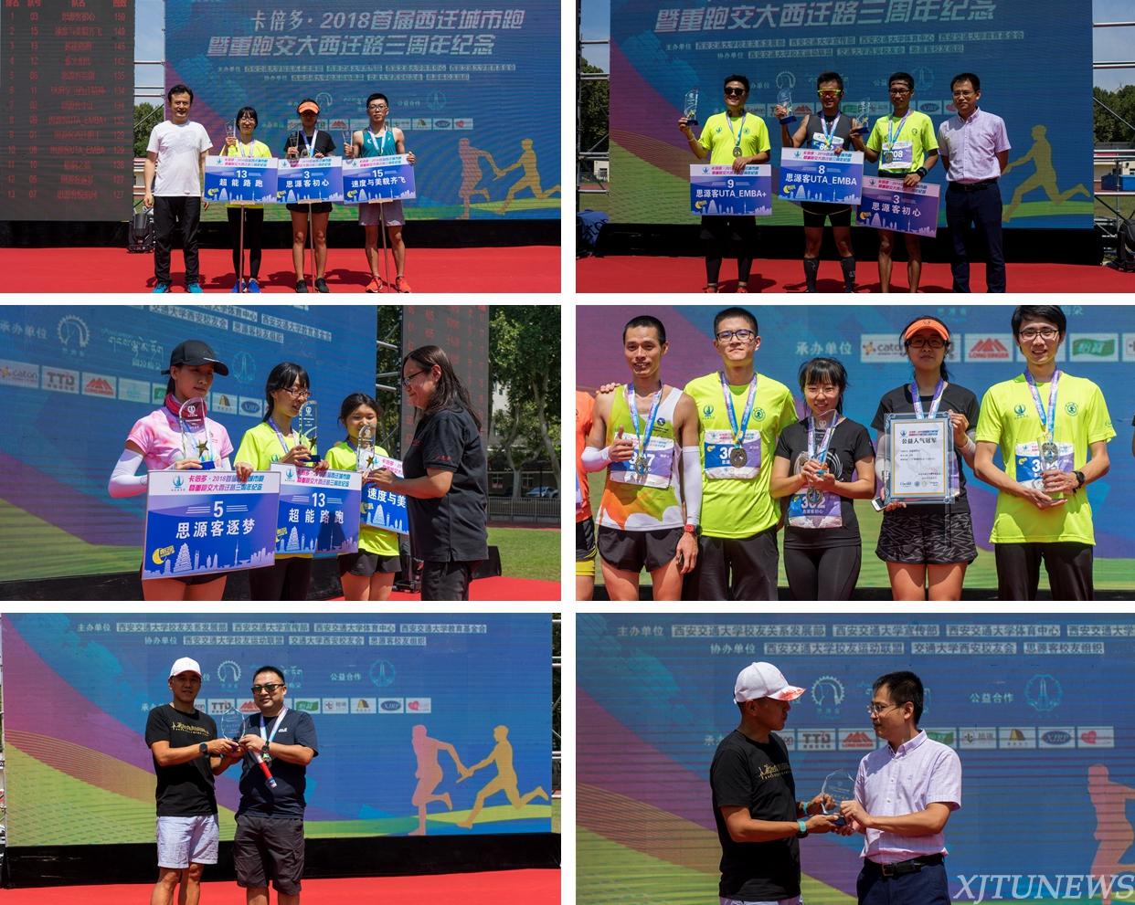 西安交通大学体育中心副主任刘长江、交通大学西安校友会副秘书长祝全全、西安交通大学校友关系发展部副主任赵力和西安交通大学校友运动联盟常务副秘书长丁江为获奖队伍和个人颁奖,西安交通大学校友运动联盟会长李文杰向全程冠名企业卡倍多食品公司和西安站支持企业英卓颁发金牌赞助纪念。