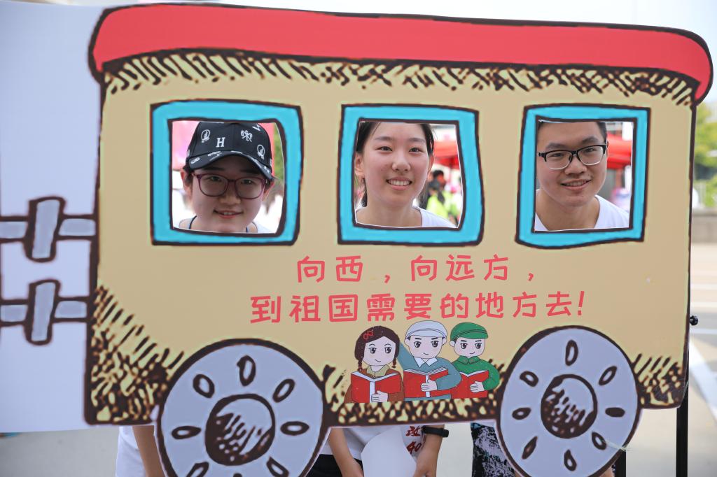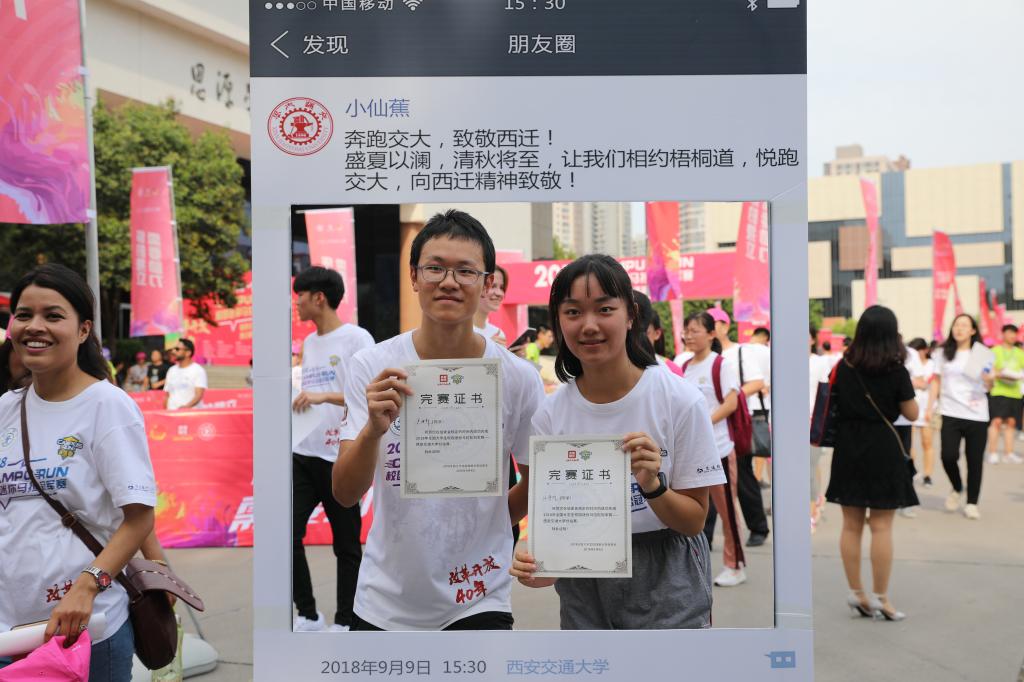 这一次的马拉松比赛对交大来说也意义非凡。62年前,电制53班全体同学首先提出“跑西安”的倡议,建议用上海到西安的象征性长跑来祝贺迁校西安,一年级各班立刻纷纷响应,广泛参与。正值改革开放四十周年和交大西迁精神纪念日前夕,再次举行跑步活动,以校园跑为载体,号召广大青年师生用脚步丈量历史,通过活动的视角,聚焦我国改革开放40年来的发展变化,重温交大西迁的峥嵘岁月,让交大人“爱国、奋斗”的精神薪火相传。赛场特意设置了西迁精神主题合影区,吸引了众多参赛者争相合影留念。