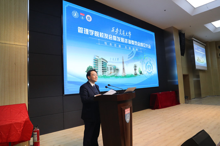 12月15日上午,以“饮水思源、共谋发展”为主题的西安交通大学管理学院校友会暨发展咨询委员会成立大会在管理学院517报告厅召开。西安交通大学校长王树国,中国工程院院士杨善林,西安交通大学管理学院教授、西交利物浦大学执行校长席酉民,西安交通大学西迁老教授李怀祖,以及西安交大相关职能部门负责人、管理学院党政领导和近400名来自全国各地的校友欢聚一堂,西安交通大学管理学院首任院长汪应洛院士向大会发来贺信,远在世界和祖国各地未能到场的校友们也纷纷发来祝贺视频,共同庆祝管理学院校友会暨发展咨询委员会成立。成立大会由西安交通大学副校长席光主持。