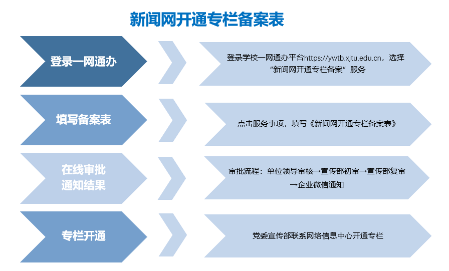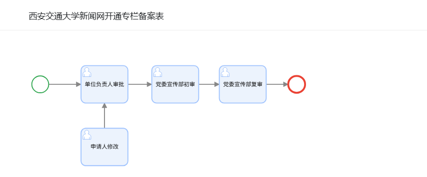 第二步:选择“西安交通大学新闻网开通专栏备案”服务,填写《新闻网开通专栏备案表》