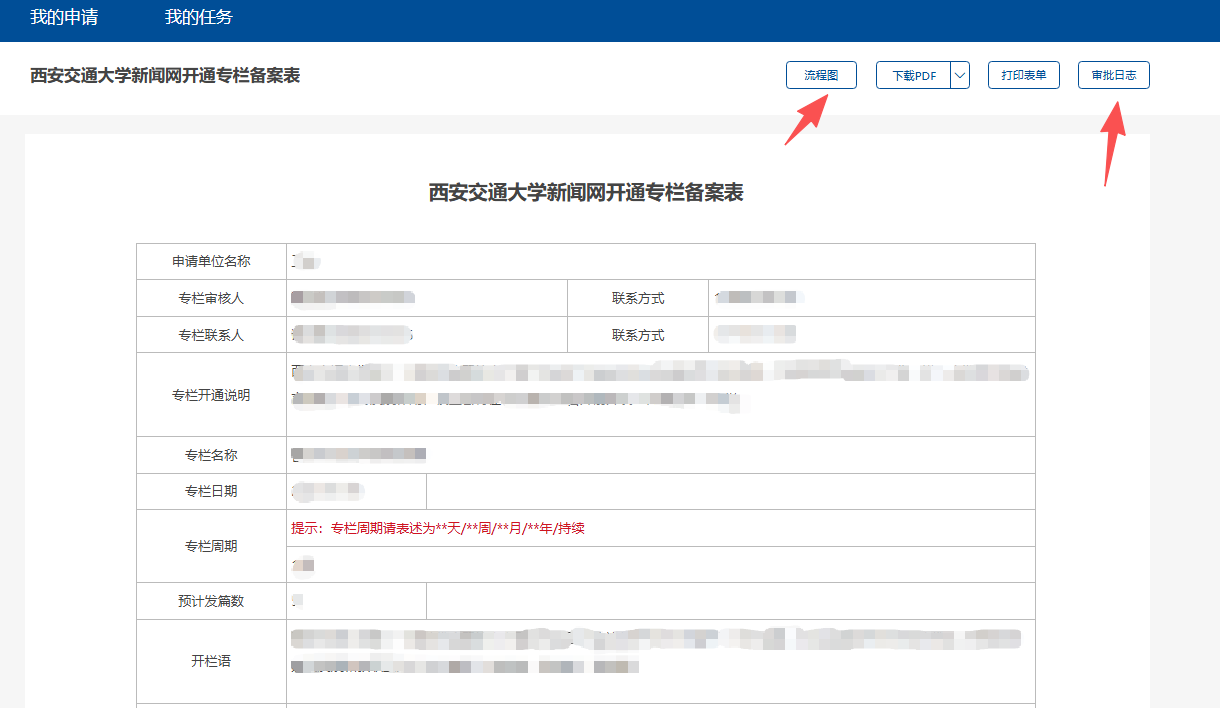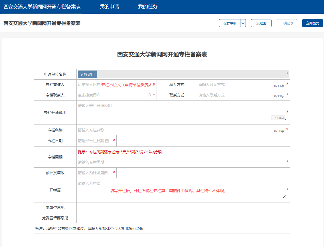 2.根据拟申请开通的专栏信息,填写《西安交通大学新闻网开通专栏备案表》。