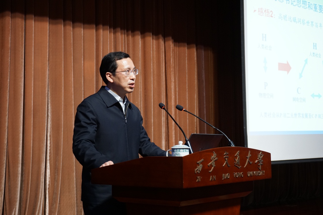 11月2日上午,王树国校长围绕“贯彻落实习近平总书记关于教育重要讲话精神,坚持‘三个面向’推进中国特色世界一流大学建设”主题为干部党员讲专题党课,深刻阐述了高等教育在新形势下承担的历史使命,对全校上下如何践行初心使命提出了具体要求。他指出,开展这次主题教育,是用习近平新时代中国特色社会主义思想武装全党的迫切需要,是推进新时代党的建设的迫切需要,是保持党同人民群众血肉联系的迫切需要,是实现党的十九大确定的目标任务的迫切需要。他强调,“无论我们走得多远,都不能忘记来时的路”,西安交大为民族而生,为时代而生,要始终做到与党和国家的发展同向同行,自觉肩负起为民族复兴培养人才的重任。
