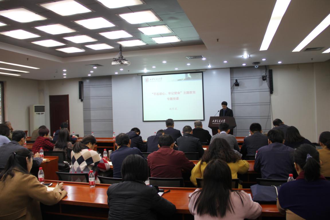 11月13日下午,学校举行“不忘初心、牢记使命”专题党课暨系所负责人培训班第三场报告,郑庆华副校长作题为“立德树人,守正创新,提质增效”的专题党课。他对习近平总书记在全国高校思政工作会议、全国教育大会、全国思政课教师座谈会、纪念五四运动100周年大会上的讲话精神进行了提炼,对办学方向、根本任务、重要标准、“四个服务”、“四个坚持不懈”的内涵作了深入解读。他认为,教育工作者应深刻把握教育的本质目的,以问题为导向,牢牢把握影响人才培养质量的内因和外因,打造一流人才培养的生态系统,培养具有创新精神和创造能力的人。