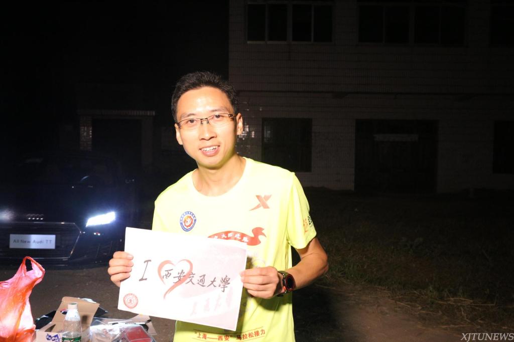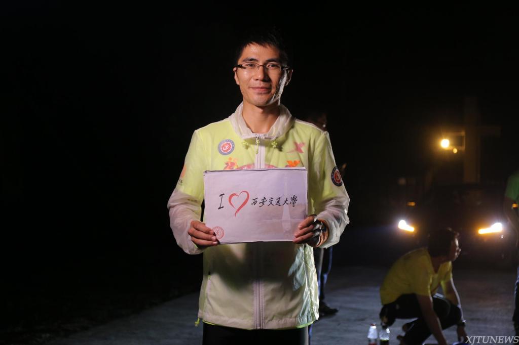 张红兵是接力中第三个跑过午夜12点的跑手。他本科和研究生均在西安交大就读通信与信息系统专业,现在IBM工作,目前还在交大读EMBA。张红兵的征途充满了挑战,晚上连续两棒80公里全上长坡,急弯多、无路灯、大车多。但他并没有退缩!