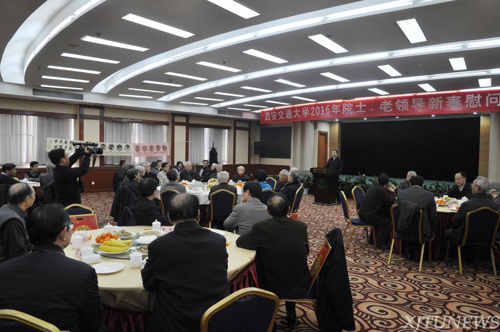 活动伊始,在张迈曾书记的提议下,全体在任校领导起立,向院士、老领导鞠躬拜年,感谢大家对学校工作的支持。“在西安交通大学全体教职工辛勤努力下,在各位院士、老领导悉心支持下,过去一年里学校取得了一些成绩,这是历史积累的结果,是交大文化的传承,是一代代交大人的宝贵经验,我们心怀感激。”张迈曾书记动情地说。