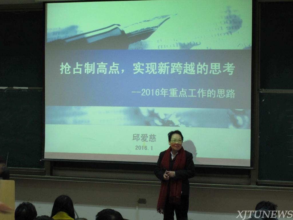 2016是西安交大迈向第三个甲子的跨越之年,也是冲击“双一流”、开启“十三五”的关键之年。1月16日,西安交大召开寒假工作会,王树国校长“抢占制高点,再创新辉煌”的报告振奋人心,张迈曾书记的五项要求强调落实,为交大人指明了方向。1月17日,各学院先后召开专题会议,认真传达寒假工作会精神,积极谋划部署2016年重点工作。