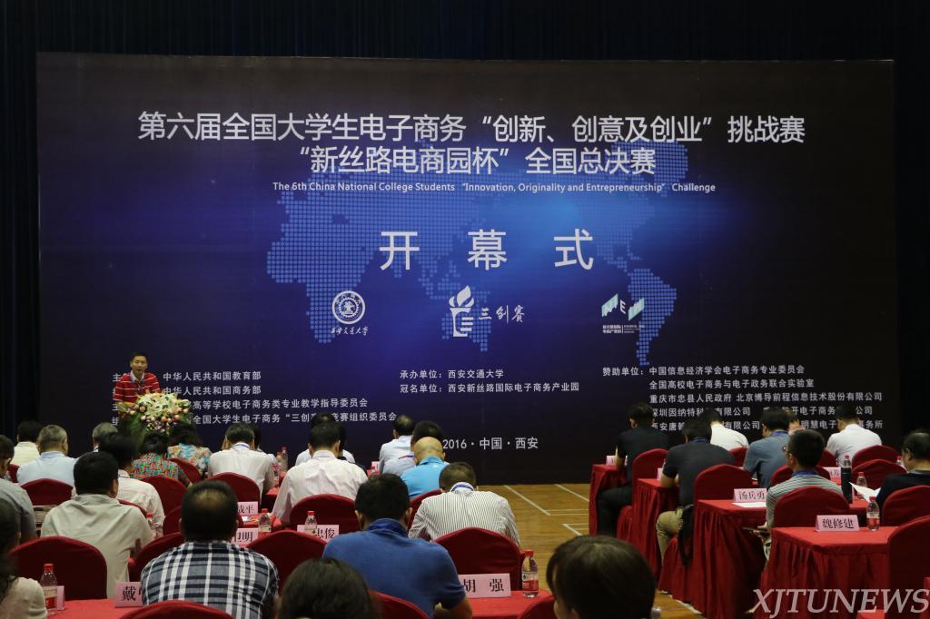 7月21日上午,第六届全国大学生电子商务“创新、创意及创业”挑战赛“新丝路电商园杯”全国总决赛开幕式在西安交大雁塔校区505体育馆举行。陕西省教育厅副厅长王紫贵,省商务厅副厅长王国龙,省电子商务协会秘书长郭金生,团省委农工部部长魏延安,西安交大副校长郑庆华,教育部电子商务类专业教学指导委员会副主任、西安交大经金学院李琪教授,西安交大经金学院宋丽颖书记等出席开幕式并致辞,他们一致期望打造“三创赛”精品品牌,进一步推动高校深化改革,强化“三创”实践,提升电子商务类人才培养质量,促进大学生就业、创业。