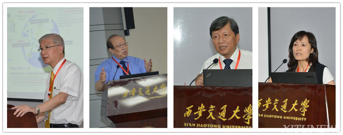 由左至右依次为:台湾大学校长杨泮池、澳门大学校长赵伟、西安交通大学校长王树国、台湾成功大学校长苏慧贞