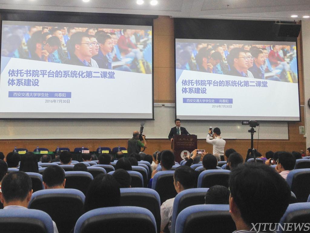 学生处处长尚春阳教授以“依托书院平台的系统化第二课堂体系建设”为主题,全面介绍了西安交大书院进行的系统化第二课堂体系建设的探索与实践,受到与会者广泛关注,并现场回应了大家关切的一些问题。