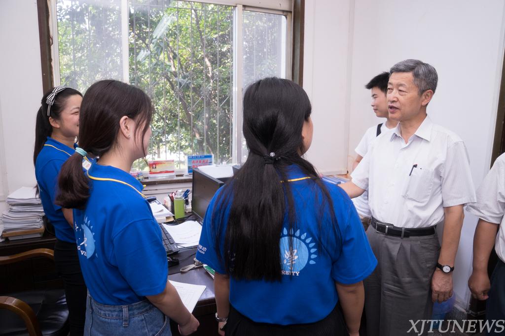 8月15日,西安交大党委副书记宫辉一行来到汉中市人社局、市统计局、市教育局等单位与交大暑期见习学子亲切交流,在各个办公地点,宫辉详细询问了见习学生具体工作和成长感悟。