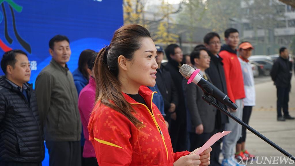 “在这里,我们通过跑步相会,跑动交大,致敬西迁。”奥运冠军郭文珺动情地说。郭文珺表示,“西迁精神”是西安交大独特、宝贵的精神财富,希望同学们继承、发扬西迁精神,为国家发展贡献智慧与力量。郭文珺号召同学们走出教室和宿舍,积极参加体育锻炼,感受运动快乐。