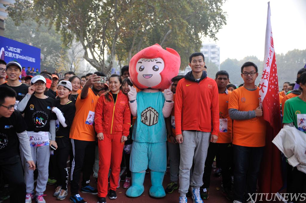 奔跑西迁路,奥运零距离。11月13日上午,“JEC杯”2016西安交通大学迷你马拉松赛在西安交大校园里鸣枪开跑。来自西安交大师生、校友及陕西省高校跑步爱好者代表等共350余名参赛选手迎风奔跑,用毅力挑战自我,用运动传递快乐。奥运冠军郭文珺、田径名将史冬鹏现场领跑,为参赛选手加油助阵。