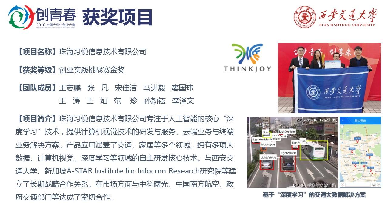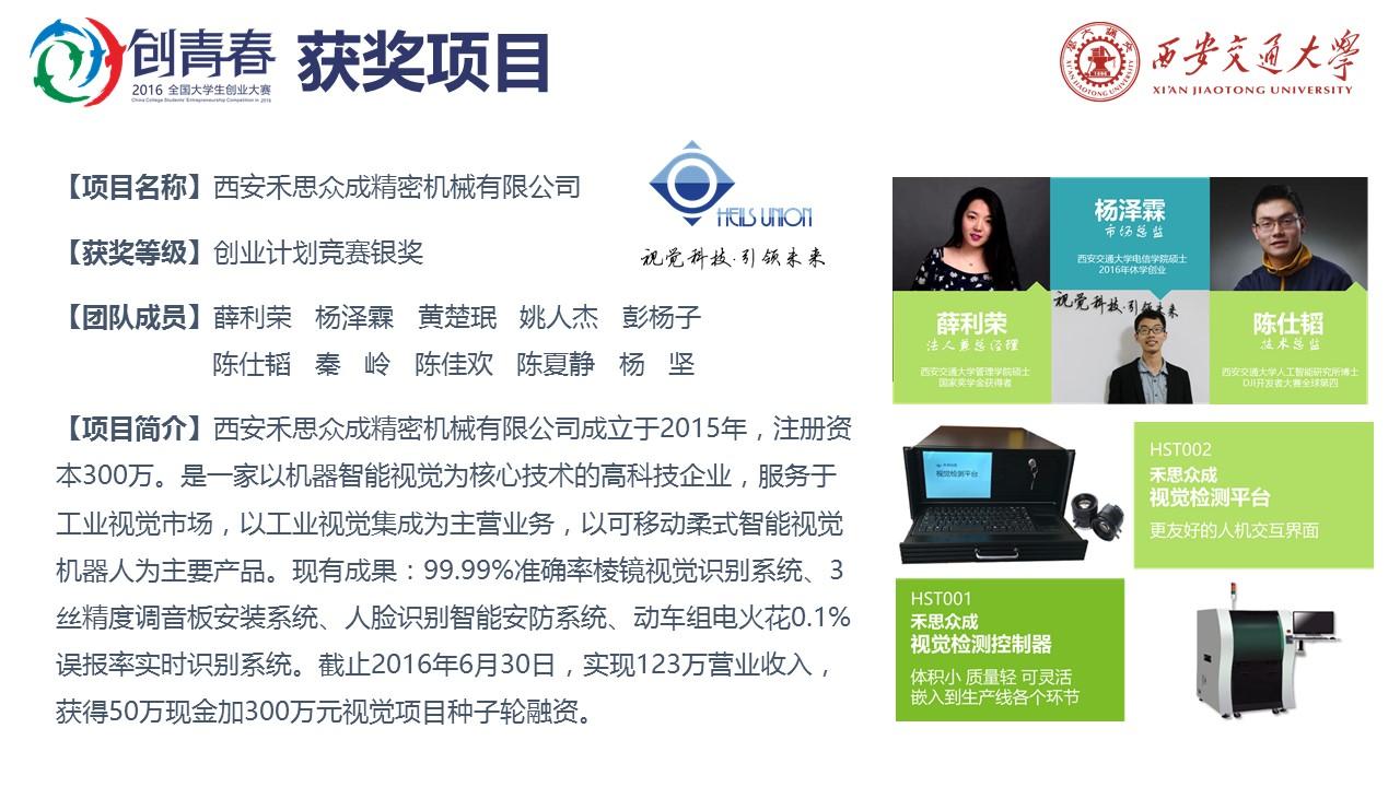 本次大赛共收到来自全国2200余所高校,11万余件参赛作品。经过各高校校赛、各省市自治区省赛、全国复赛选拔,共有来自全国31个省市自治区、香港特别行政区、澳门特别行政区220所高校的399件作品入围终审决赛。本次大赛首次邀请到美国、德国、荷兰等海外高校作品在终审决赛期间参展。西安交大参赛作品“珠海习悦信息技术有限公司”等6个项目突出重围,进入全国终审决赛,最终获得2金4银的佳绩,夺得“创青春”全国大学生创业大赛“优胜杯”。特别一提的是,交大机械学院博士生杨涛的创业项目“西安知象光电科技有限公司”入选全国八强,与清华大学、浙江大学等高校同场参加了2016“创青春”全国大学生创业大赛创业实践电视公开赛。