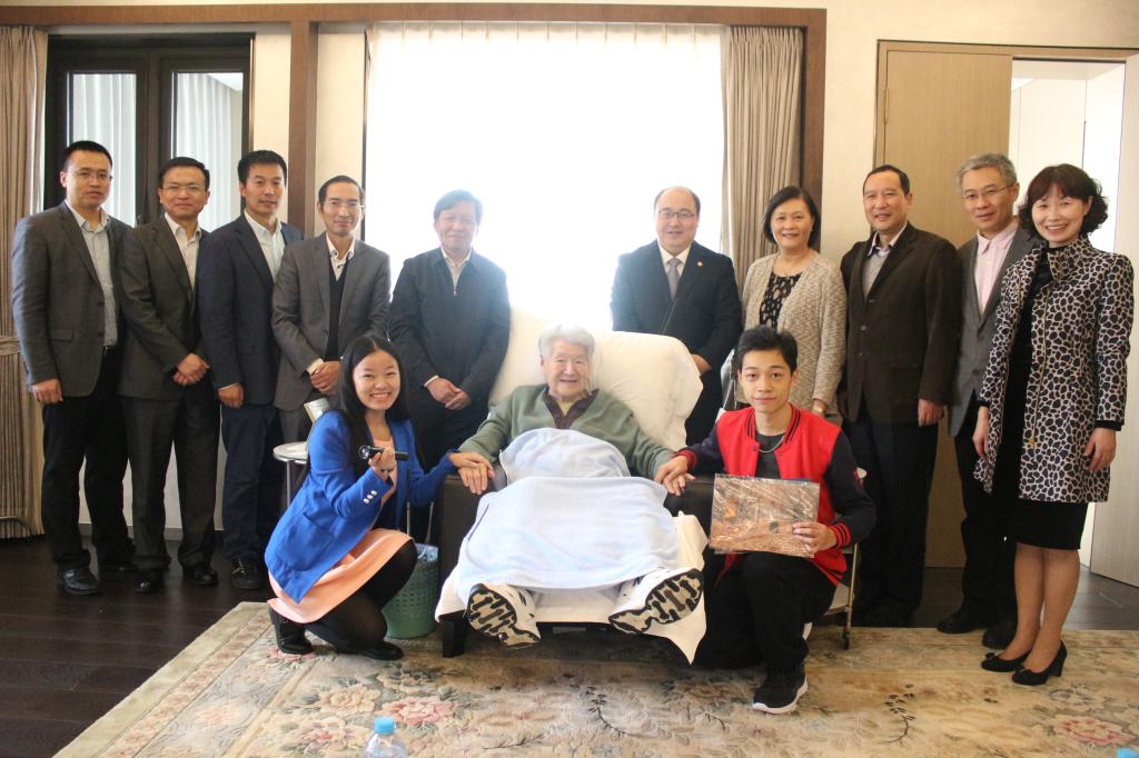 王树国校长代表学校感谢唐仲英先生、唐仲英基金会多年来对学校一如既往的支持,感谢唐先生对整个教育事业做出的卓越贡献,并和唐仲英先生、徐小春女士就公益慈善、西部教育和山区扶贫进行了深入交流,达成共识。英仔爱心社和唐仲英爱心社的同学向唐先生、徐女士等赠送了精心制作的纪念品。