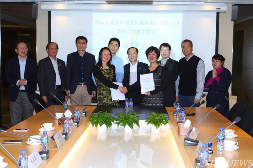 11月26日下午,代表团访问了校友所在的香港文化地标有限公司,赵昌昌副书记与校友雷蕾副总裁,廖嘉濂执行董事亲切会谈,商讨在丝路大学联盟框架下,双方如何就“一带一路”沿线的教育交流和文化沟通实现合作共赢,并见证双方代表签署合作协议。