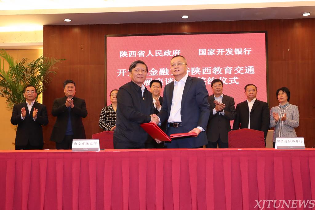 12月2日上午,陕西省人民政府与国家开发银行在西安召开开发性金融支持陕西交通、教育发展座谈会。陕西省副省长庄长兴、国家开发银行副行长王用生、西安交通大学校长王树国参加座谈会。座谈会上,西安交通大学与国家开发银行陕西分行签订开发性金融战略合作协议,双方将建立长期、稳定和深度的开发性金融战略合作关系,国家开发银行将牵头组建银团,全力推进中国西部科技创新港的建设发展。