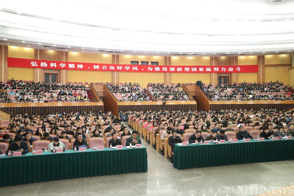 “科学精神,是从事科学研究的精神动力和强大指引,”王树国校长首先指出,青年学子应弘扬科学精神,树立良好学风,为建设创新型国家而努力奋斗。他说,一个国家的强盛需要一代又一代的努力奋斗,未来的重任寄托在年轻人身上,要承担好这个责任,精神和风气成为夯实基础不可或缺的重要部分。