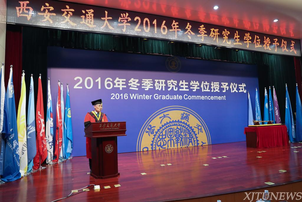 12月19日下午,西安交大2016年冬季研究生学位授予仪式在主楼多功能报告厅隆重举行,874位毕业生怀揣梦想,告别母校,吹起号角,开启人生新征程。